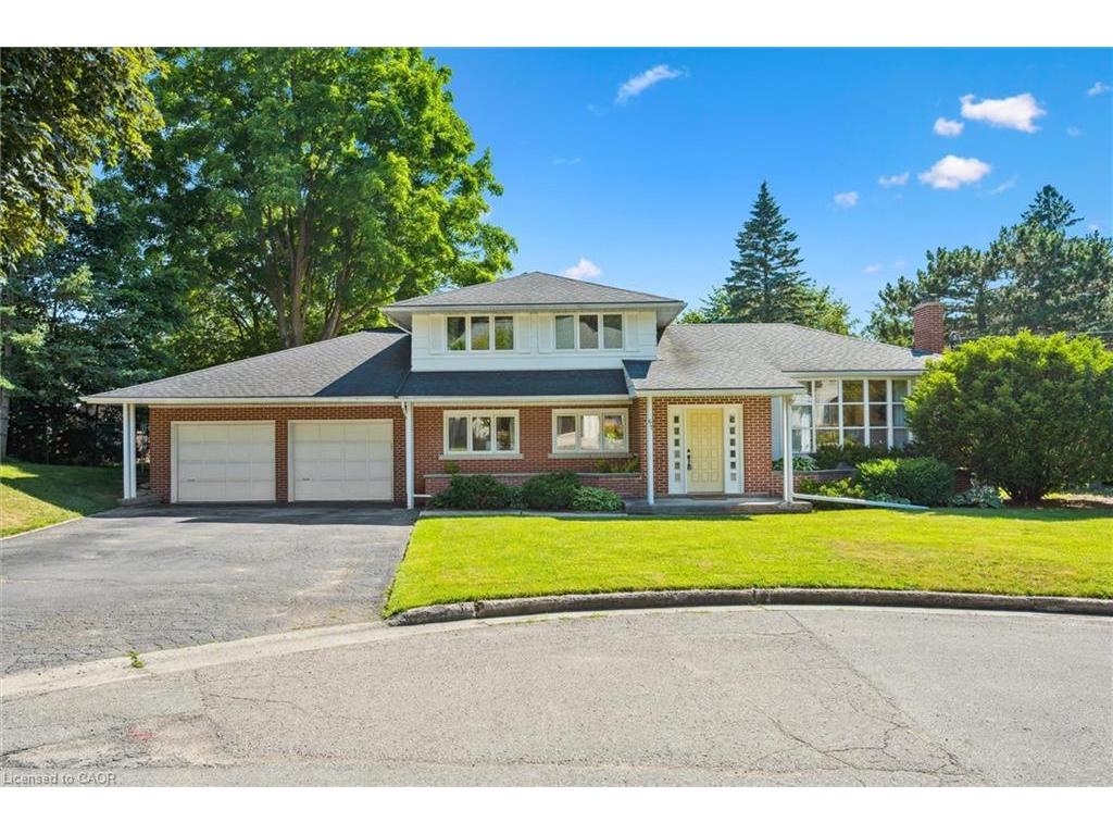 Endless Potential in a Prime Location! Set on a generous lot at the end of a quiet, dead-end street lined with multi-million dollar homes, this well-maintained property is ready to be transformed into your dream residence. With timeless architectural details and a spacious layout, the possibilities here are truly exciting. The main level offers three distinct living areas: a front living room with a large bay window, an expansive family room with wood-beamed ceiling, and a cozy sunroom featuring exposed brick and a fireplace. A convenient powder room and interior access to the double garage add function to form. Upstairs, you'll find three bedrooms and two full bathrooms, including a private primary ensuite. The partially finished basement provides even more space - imagine your home office, gym, or media room. Step outside to a large, private backyard with mature landscaping, a deck, and beautiful old-growth trees. Just steps from the Speed River, downtown Guelph, and the University, the location alone makes this an exceptional opportunity. Don't miss your chance to unlock the potential in this remarkable property!